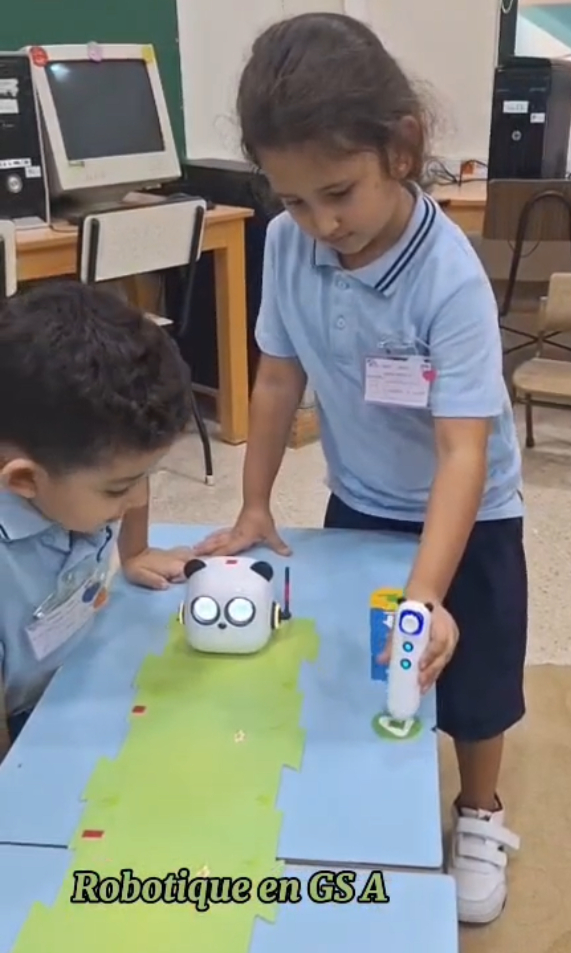 Les élèves de la GS A ont fait la découverte de mTiny, notre petit robot qui nous accompagnera tout au long de l’année. Ils l’ont observé, manipulé, et même aidé à célébrer son anniversaire et à rejoindre son lit ! Une séance pleine d’enthousiasme, de joie et de belles découvertes. Les premiers pas en robotique sont lancés à la maternelle !