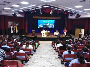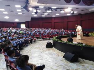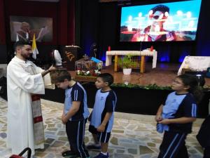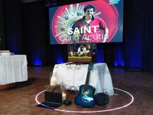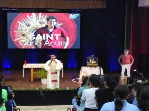 أحبَّ يسوع، جعل من الإفخاريستيّا طريقَه إلى السّماء، استخدمَ وسائلَ التّكنولوجيا، لِنَشرِ كلمةِ النّور، والحبّ... فبات شفيعَ هؤلاءِ الصّغار، متعلّمي الصّفوف الأساسيّة: الأوّل، والثّاني، والثّالث، الّذين صلّوا أمامَ ذخائرِه، رفعوا قلوبَهم نحو السّماء، وطلبوا شفاعتَهُ، ففاحت طيوبُ ذاك اللّقاءِ سلامًا، ومحبّةً في مسرح “الڤال”، في صرح السّلام، والمحبّة...